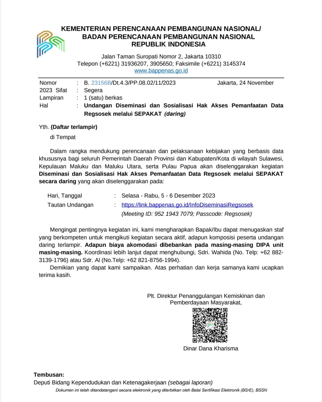 2 Diseminasi dan Sosialisasi Hak Akses Pemanfaatan Data Regsosek melalui SEPAKAT 09:00 Via Zoom Meeting ID 952 1943 7079, Passcode : Regsosek Kepala DPMK, Kepala Dinas Sosial, Kepala Dinas Kesehatan, Kepala Dinas Dukcapil, Kepala Dinas Pendidikan - BAPPENAS RI -