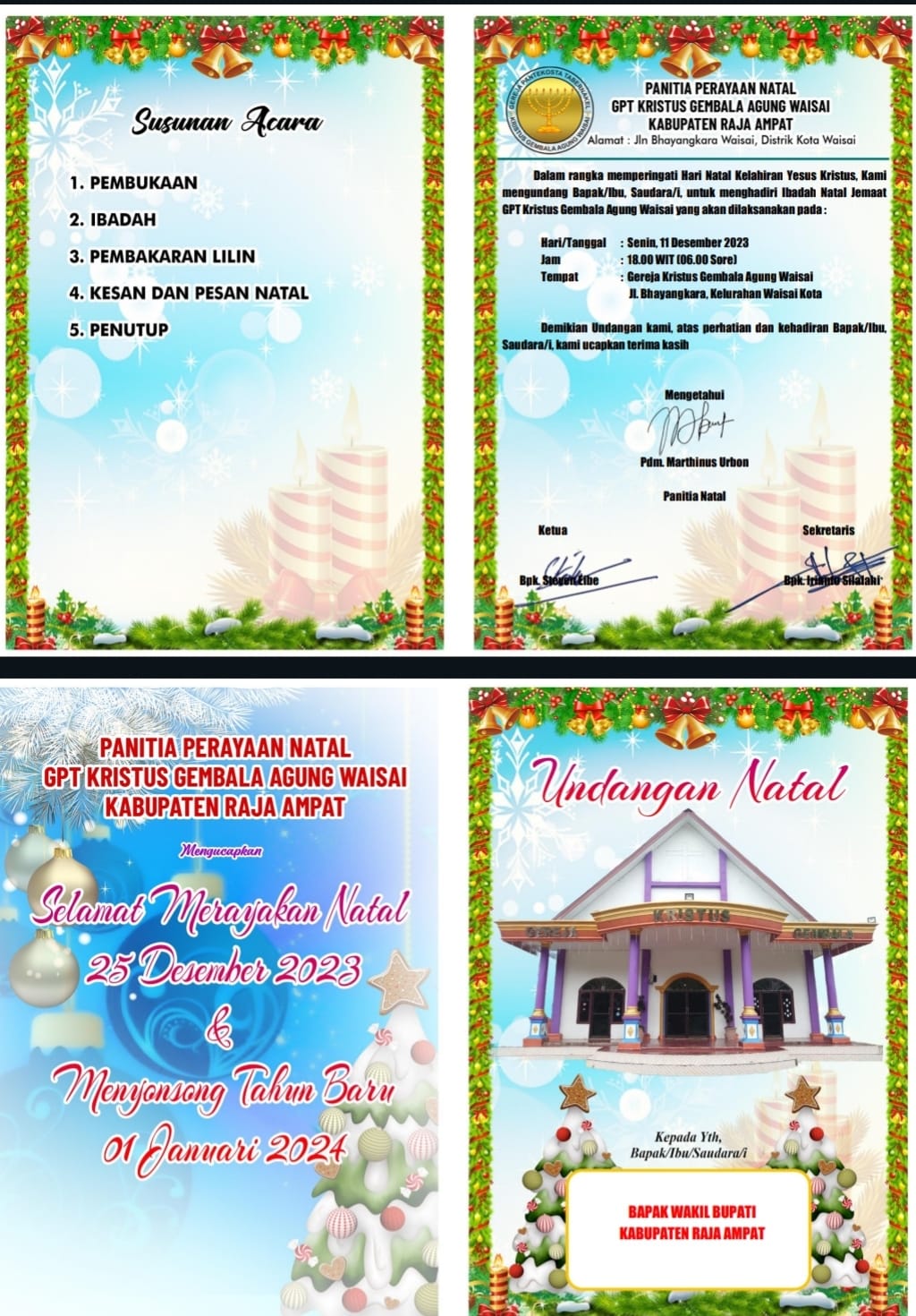 | 3 | Memperingati Hari Raya Natal | 18:00 | Gereja Kristus Gembala Agung Waisai | Wakil Bupati | - | Panitia Perauaan Natak GPT Waisai | - | |