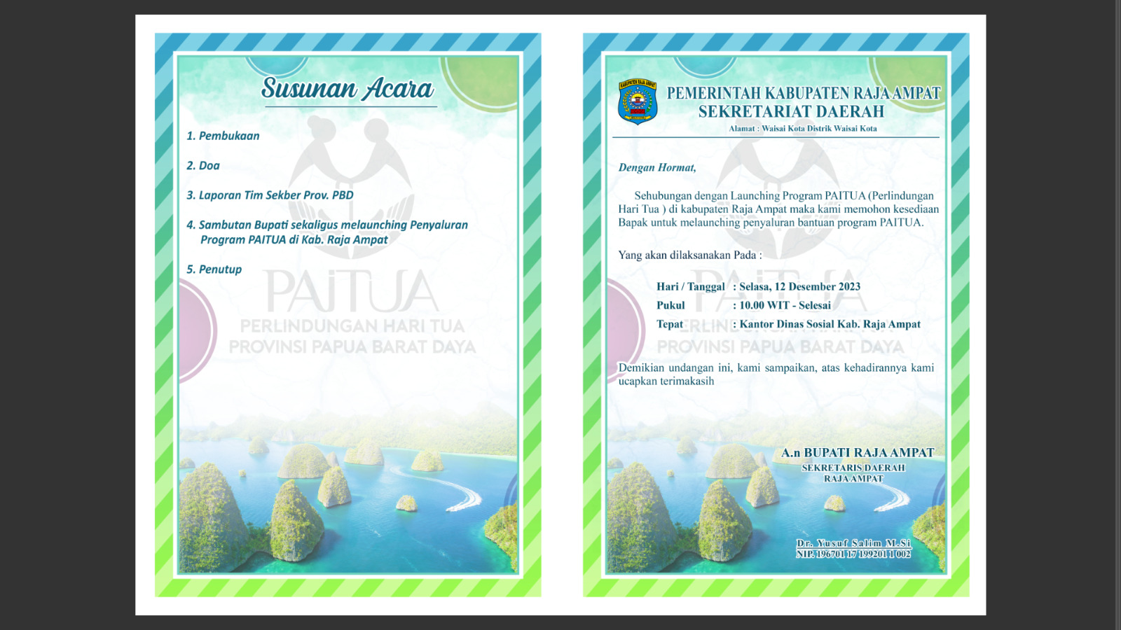 1 Launching Program PAITUA (Perlindingan Hari tua) 10:00 Kantor Dinas Sosial Kab. Raja Ampat Bupati, Wakil Bupati - Dinas Sosial -