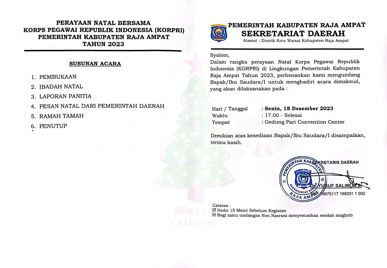 Bagi Tamu Non Nasrani menyesuaikan Setelah Magrib |