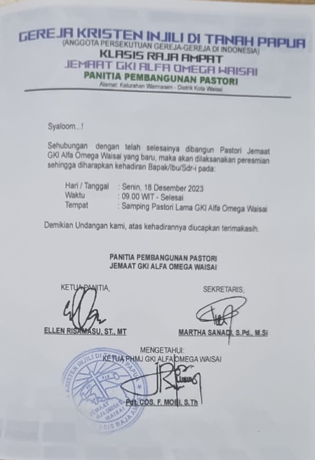 Samping Pastori Lama GKI Alfa Omega waisai |