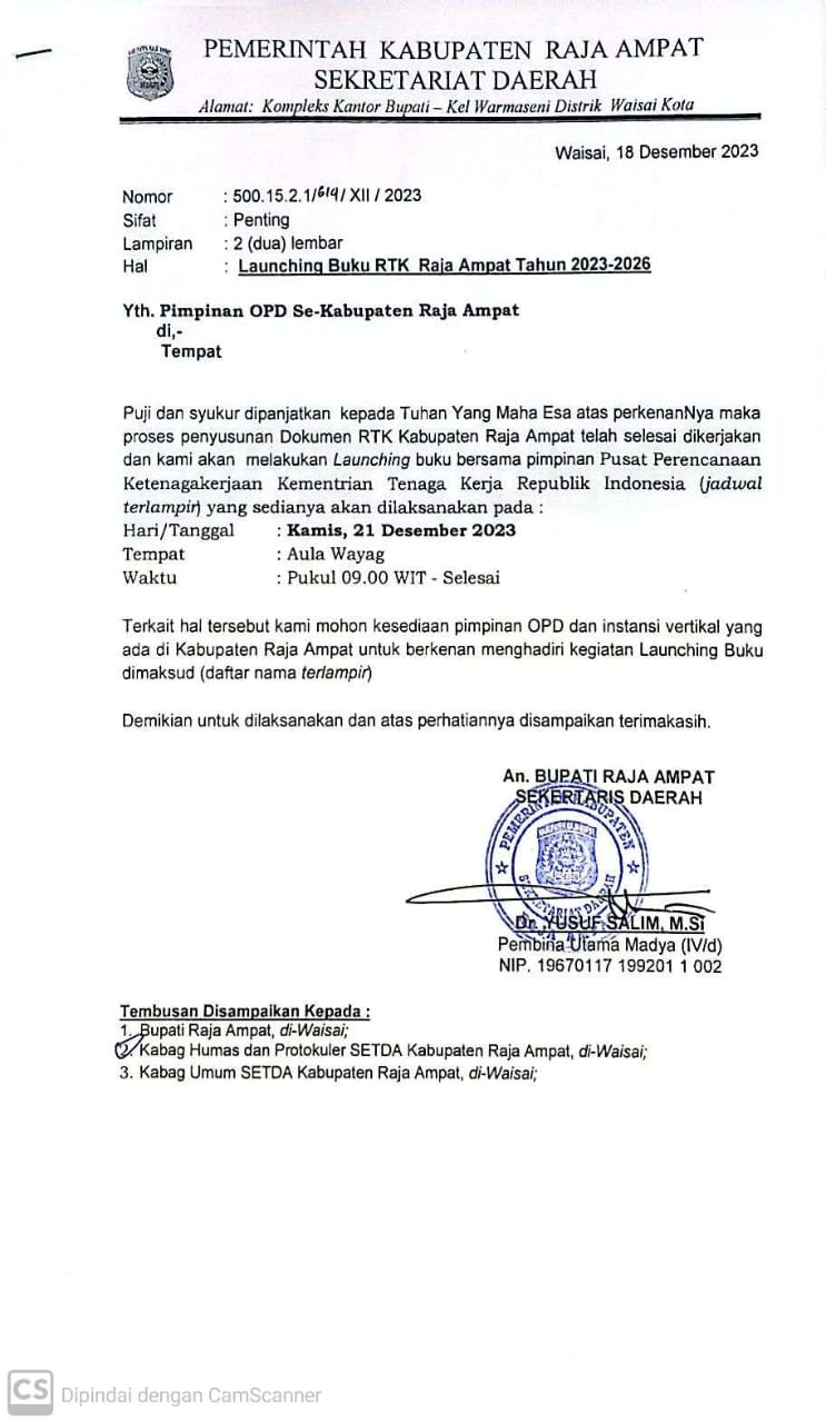 Launching Buku RTK Kabupaten Raja Ampat tahun 2023-2026