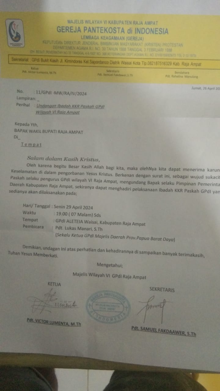 4 Ibadah KKR Paskah GPdI Wilayah VI Raja Ampat 19:00 GPdI ALETEIA Waisai Wakil Bupati - Gereja Pantekosta di Indonesia Kabupaten Raja Ampat -