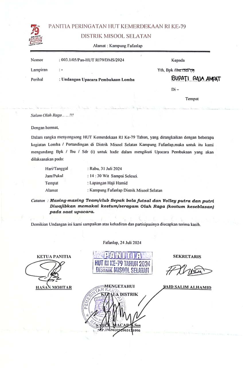 Panitia Peringatan HUT Kemerdekaan RI Ke 79 Tahun Distrik Misool Selatan |