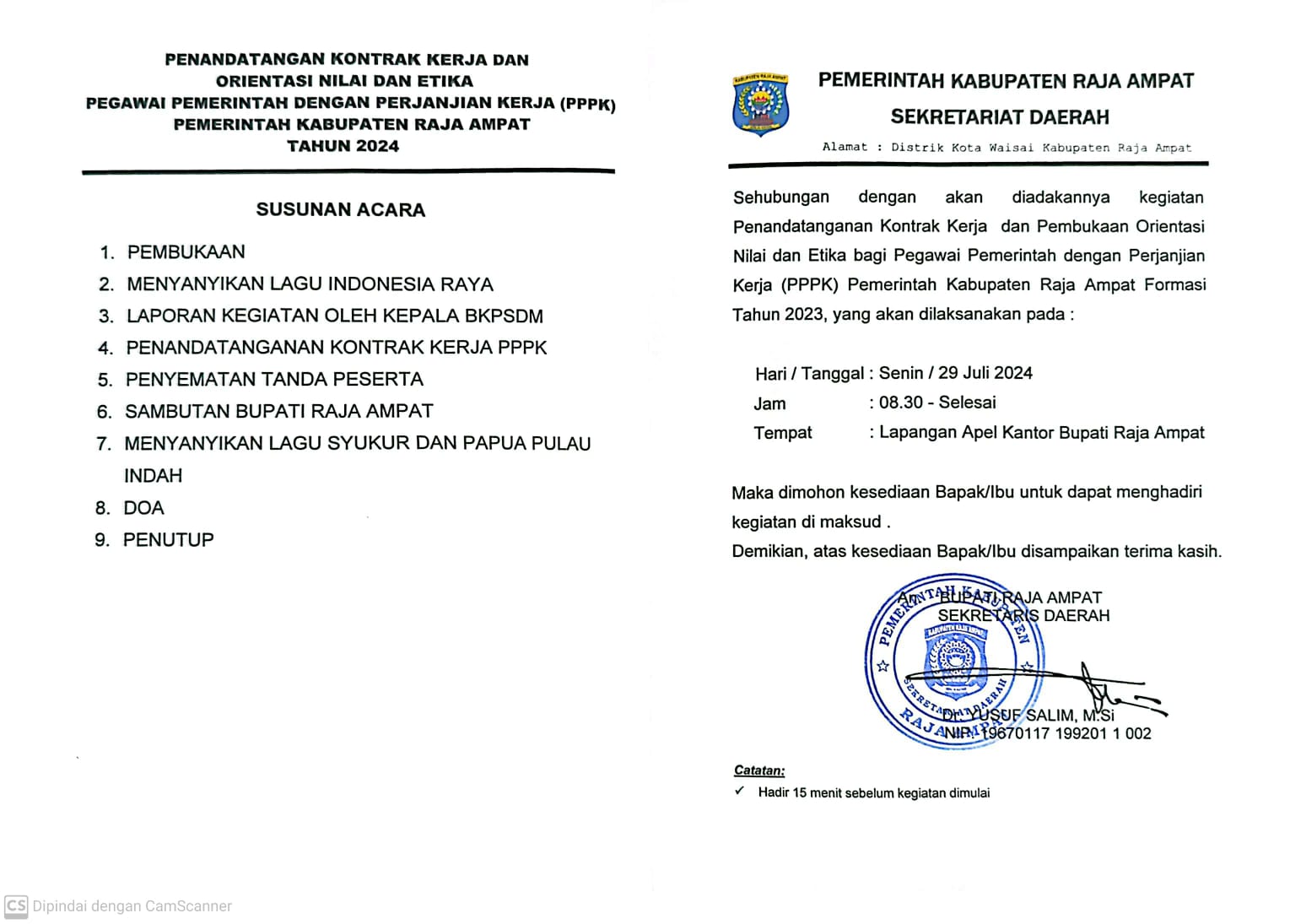Sekretaris Daerah, Seluruh Asisten SETDA, Seluruh Kepala OPD, Seluruh Kabag SETDA, Ka Distrik Kota Waisai |
