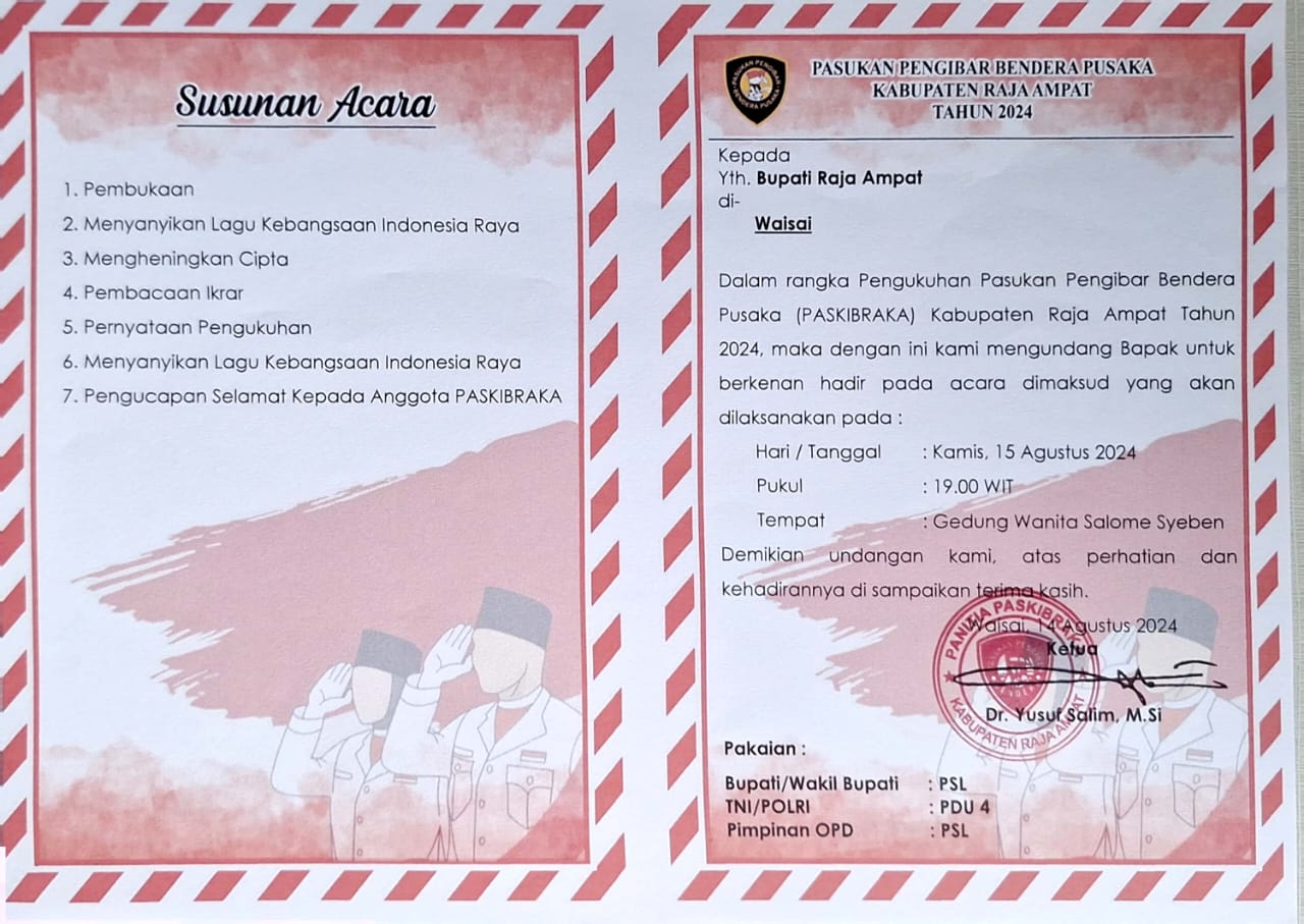 Pengukuhan Pasukan Pengibar Bendera Pusaka (PASKIBRAKA) Kabupaten Raja Ampat Tahun 2024
