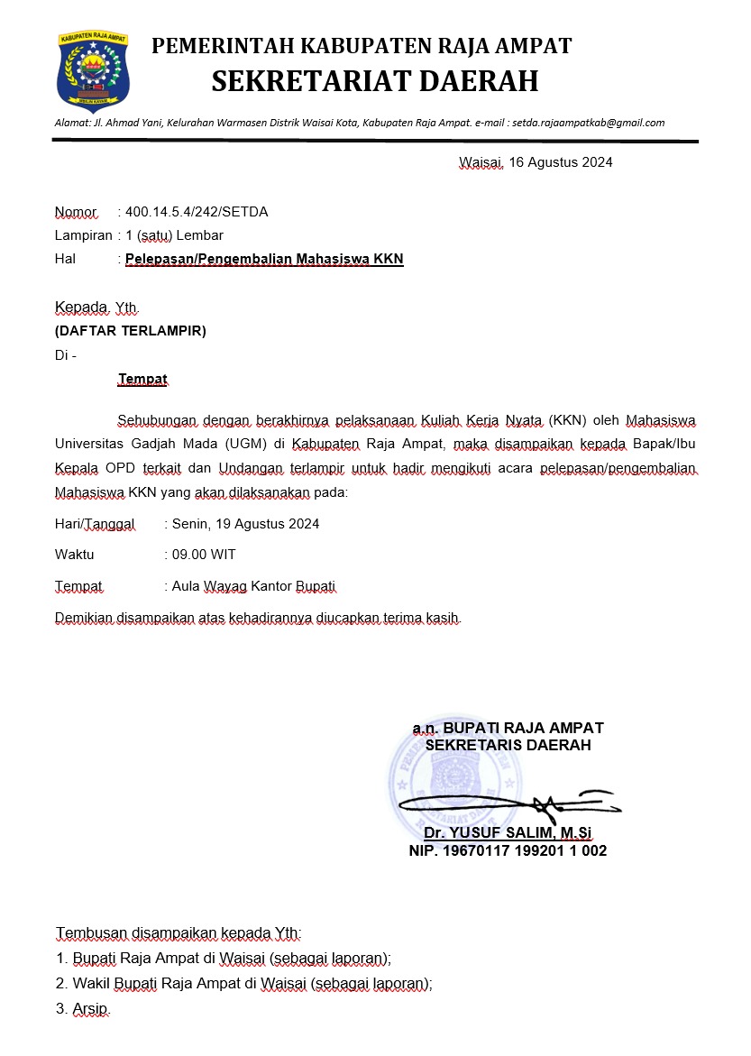 Pelepasan/Pengembalian Mahasiswa KKN UGM di Kabupaten Raja Ampat |