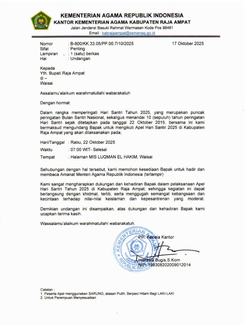 Apel dalam Rangka Peringatan Hari Santri Nasional Tahun 2025