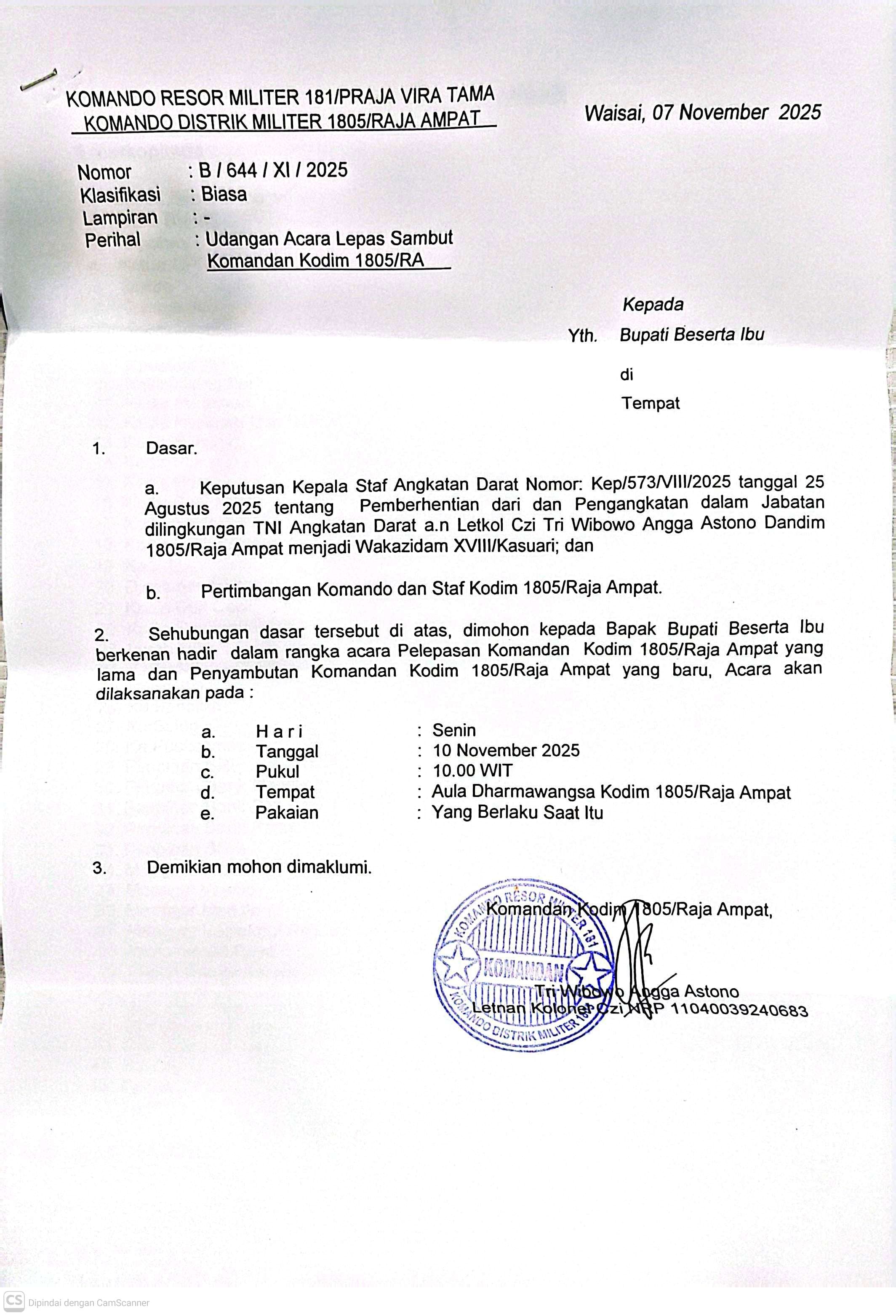 Lepas Sambut Komandan Kodim 1805/Raja Ampat |