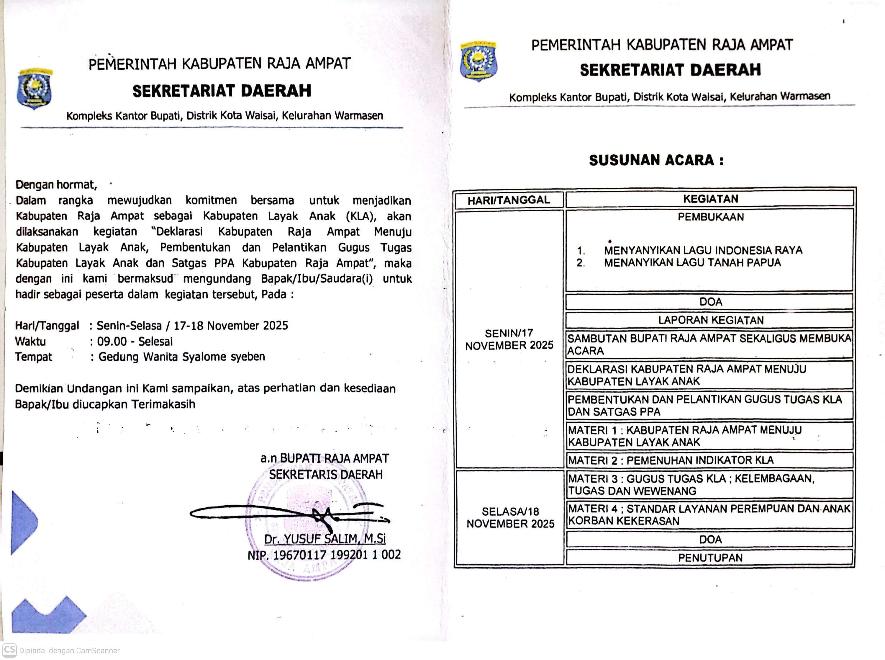 Bupati dan Wakil Bupati Raja Ampat, Sekda Kab. Raja Ampat, Ka Bag. Prokopim. |
