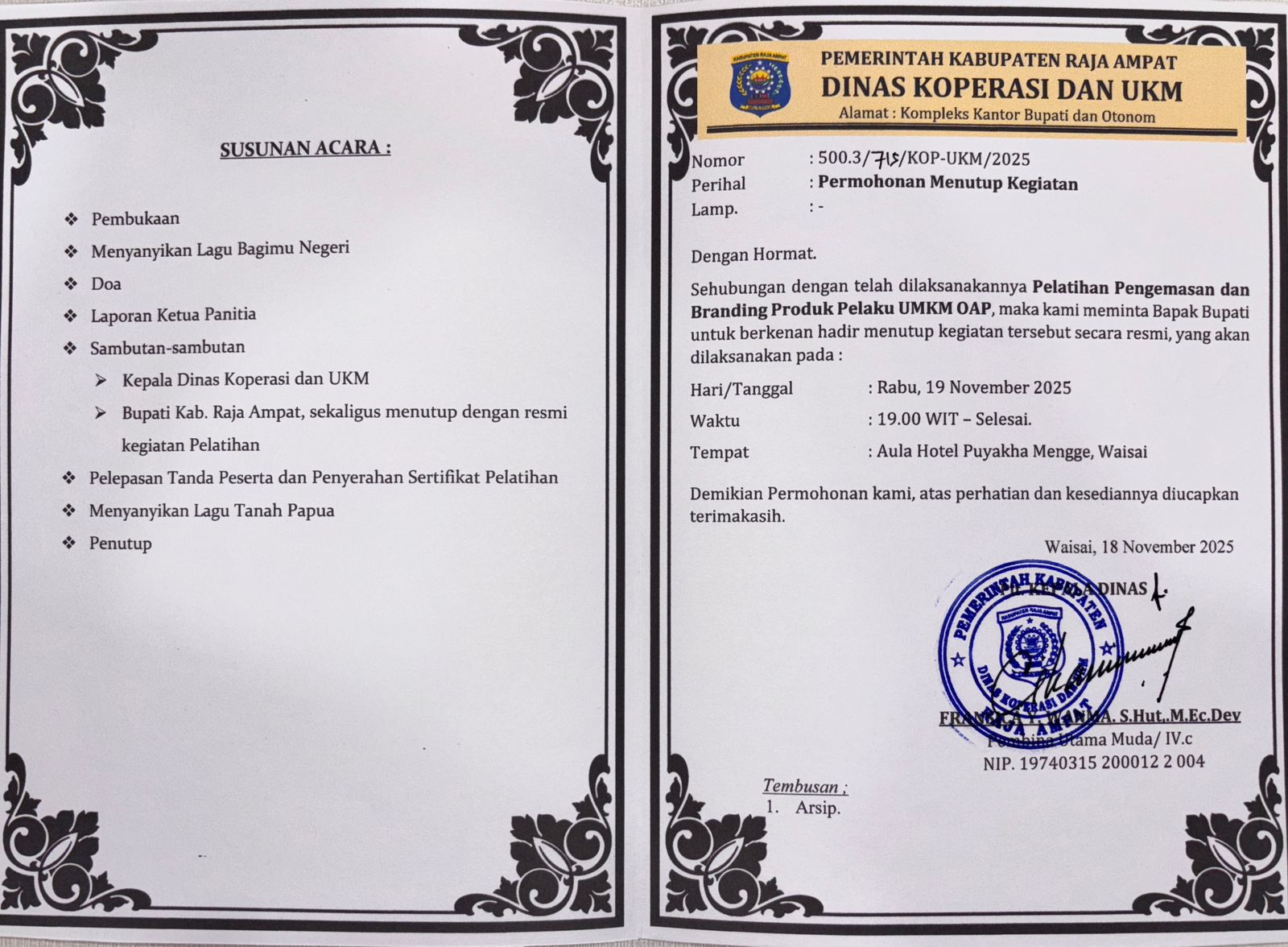 Sekreataris Daerah, Kepala Bappeda Kab. Raja Ampat |