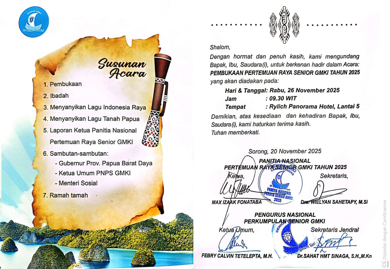 4 Pembukaan Pertemuan Raya Senior GMKI Tahun 2025 09:30 Rylich Panorama Hotel Sorong, Lantai 5 Bupati Raja Ampat - Panitia Nasional Pertemuan Raya Senior GMKI Tahun 2025 -