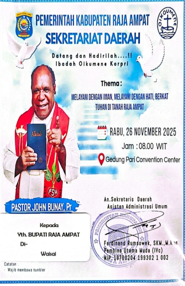 2 Ibadah Oikumene Korpri 08:00 Gedung Pari Convention Center Waisai Bupati, Wakil Bupati, Sekda. - Pemerintah Kabupaten Raja Ampat -