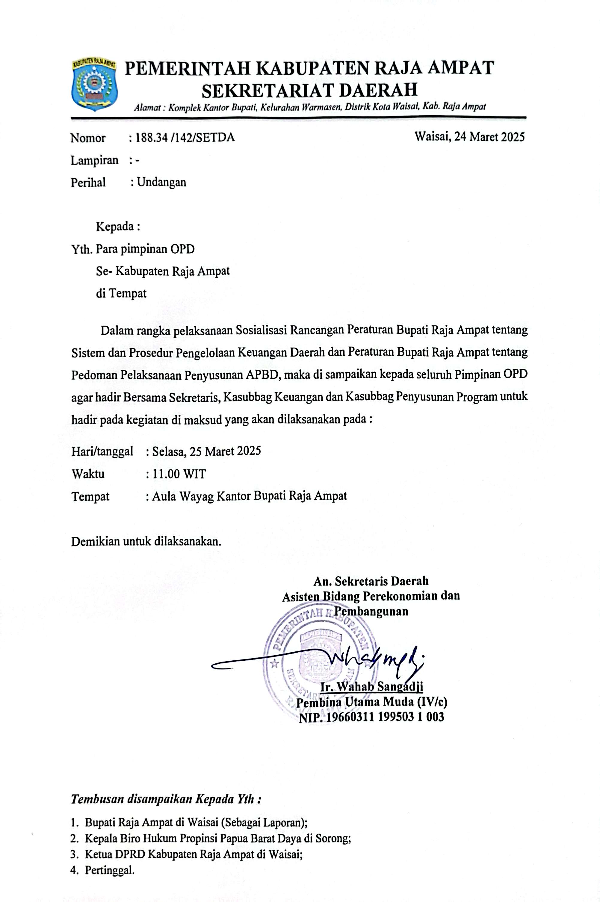 Sosialisasi Rancangan Peraturan Bupati Raja Ampat tentang Sistem dan Prosedur Pengelolaan Keuangan Daerah serta tentang Pedoman Pelaksanaan Penyusunan APBD |