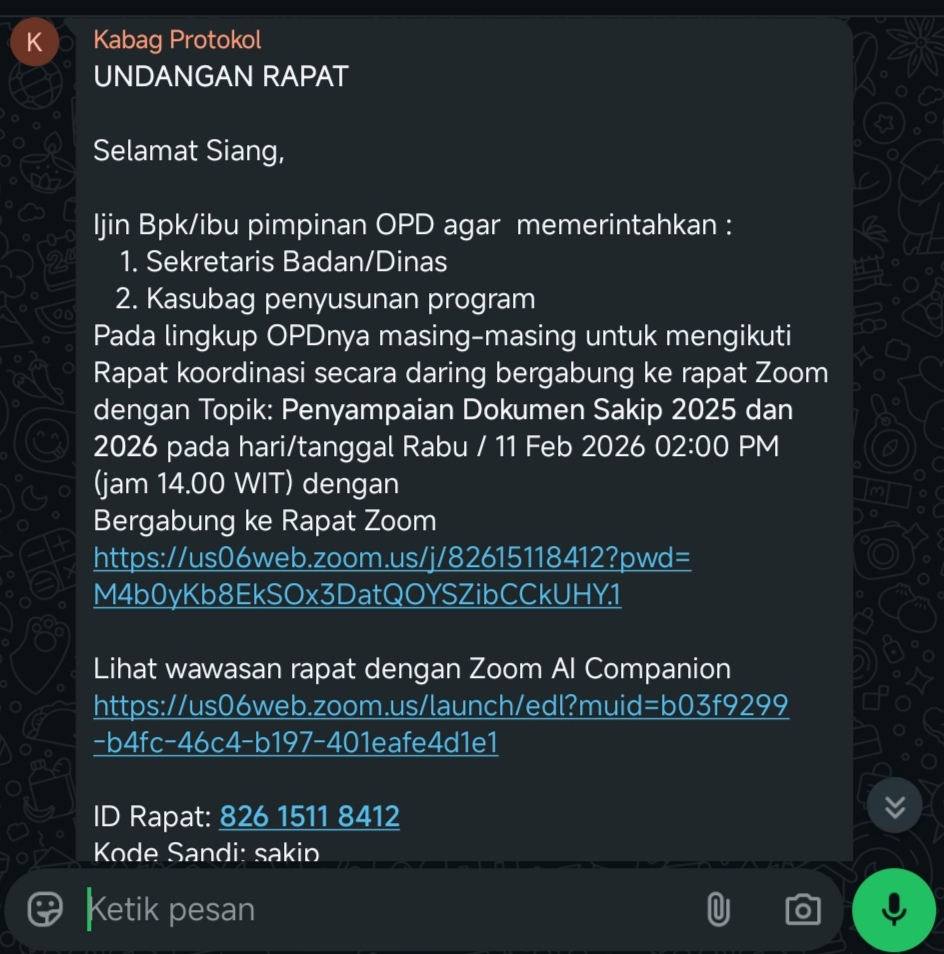 Rapat Koordinasi Penyampaian Dokumen Sakip 2025&2026 |
