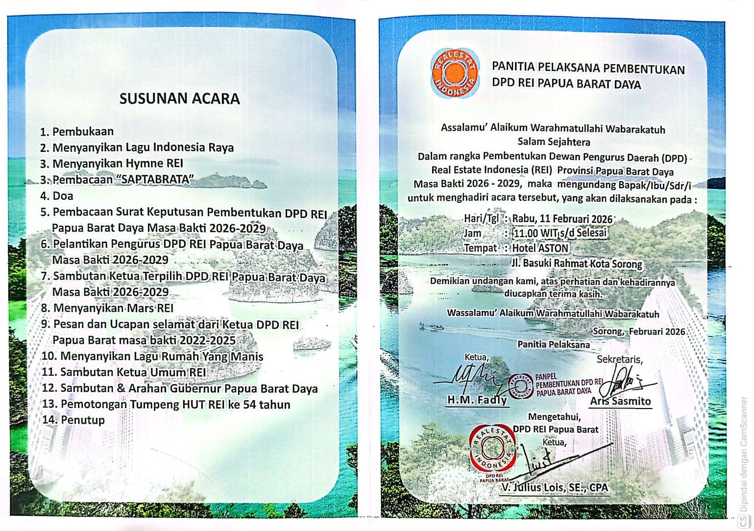 Pembentukan Dewan Pengurus Daerah (DPD) Real Estate Indonesia (REI) provinsi Papua Barat Daya |