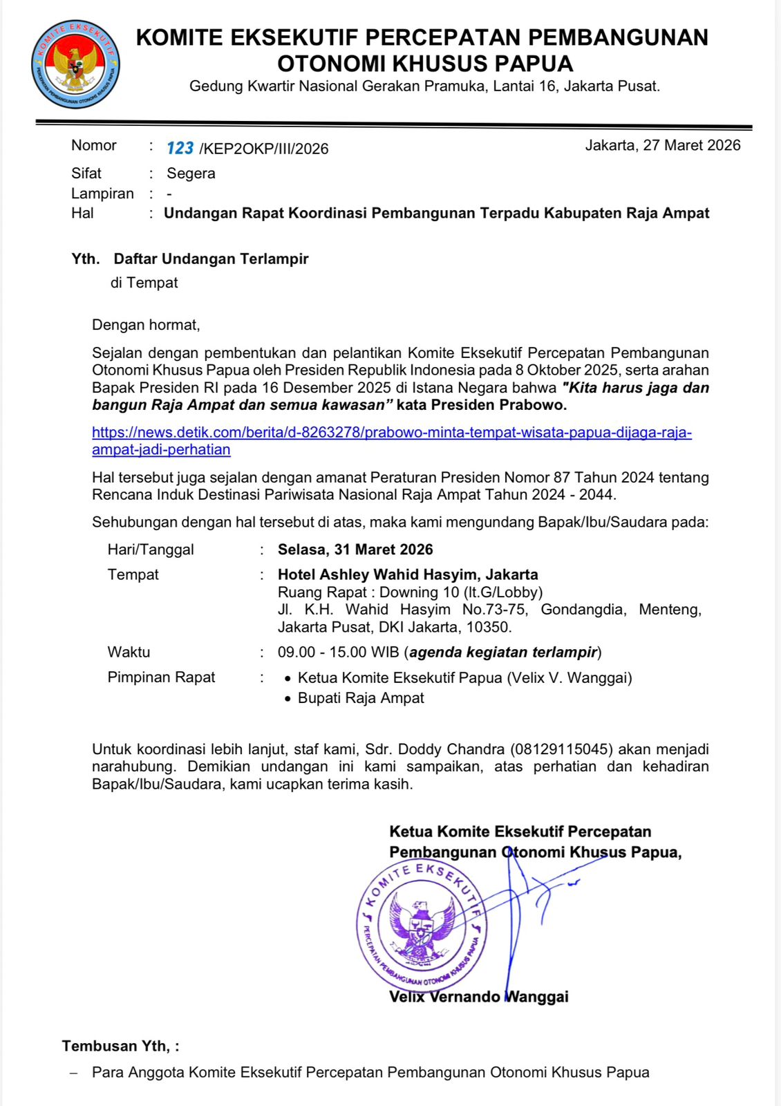 Komite Eksekutif Percepatan Pembangunan OTSUS Papua |