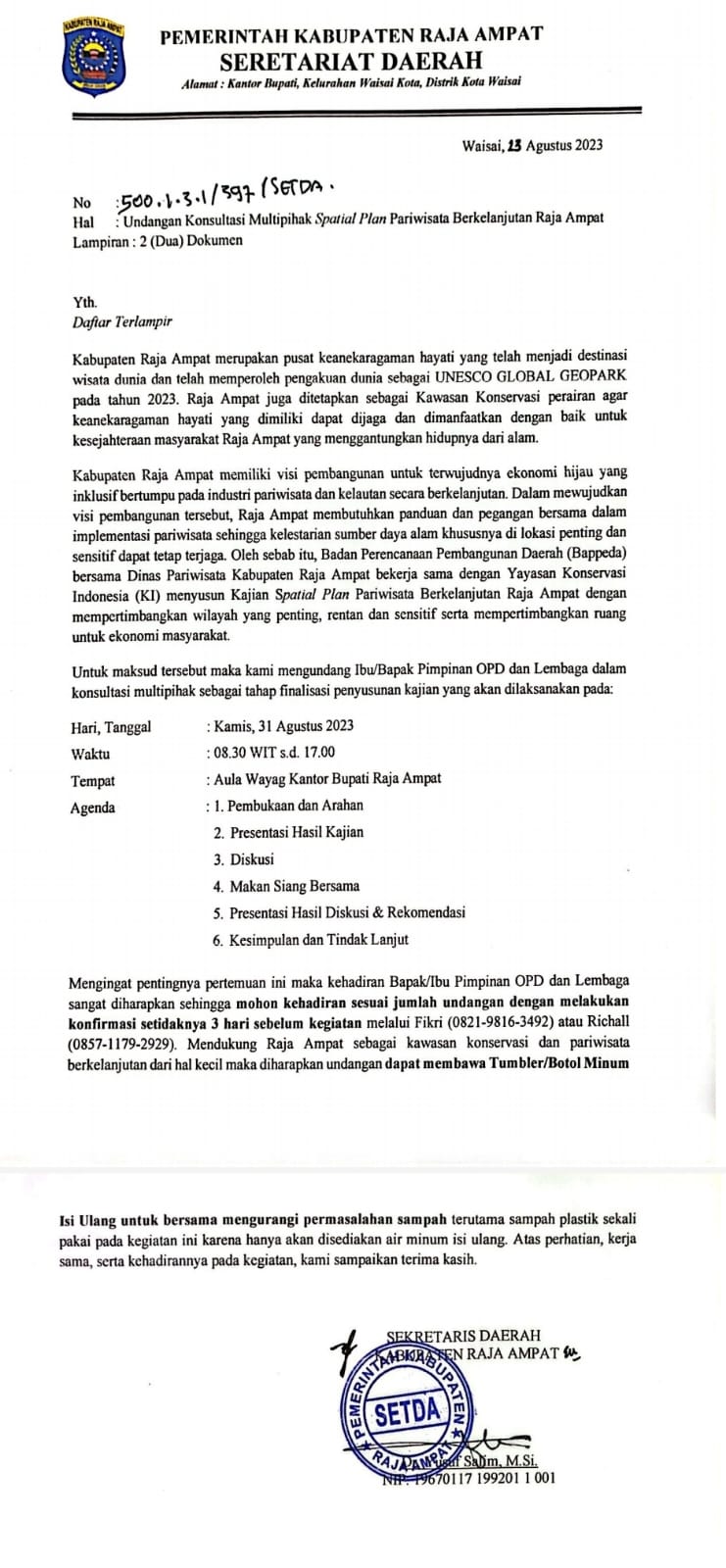 Konsultasi Multipihak Spasial Plan Pariwisata Berkelanjutan Raja Ampat |