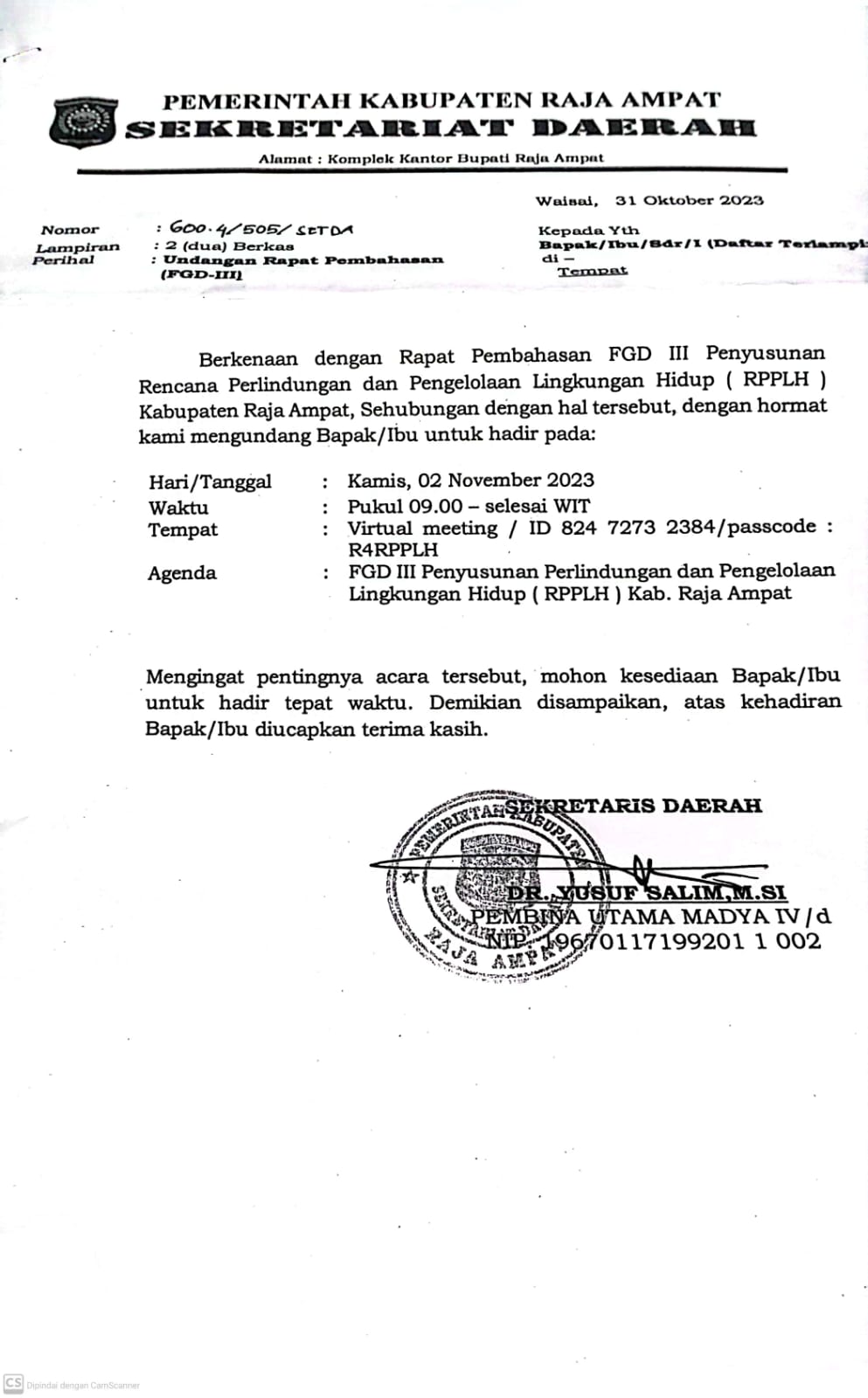 Rapat Pembahasan FGD III Penyusunan Rencana Perlindungan dan Pengelolaan Lingkungan Hidup (RPPLH) Kabupaten Raja Ampat |