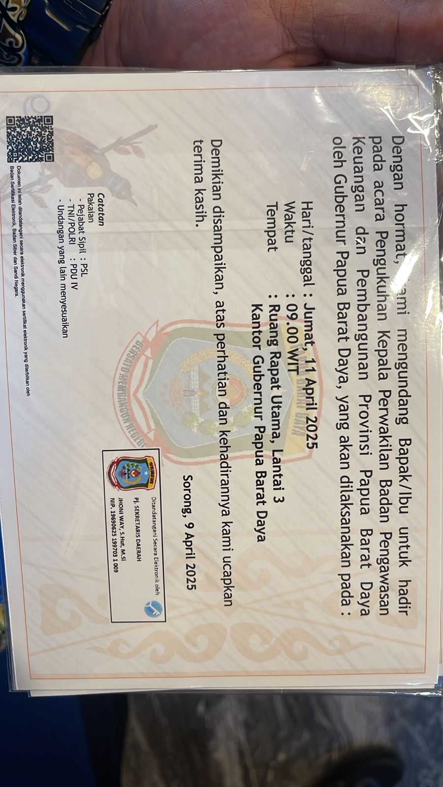 Pengukuhan Kepala Perwakilan Badan Pengawas Keuangan dan Pembangunan Provinsi Papua Barat Daya |