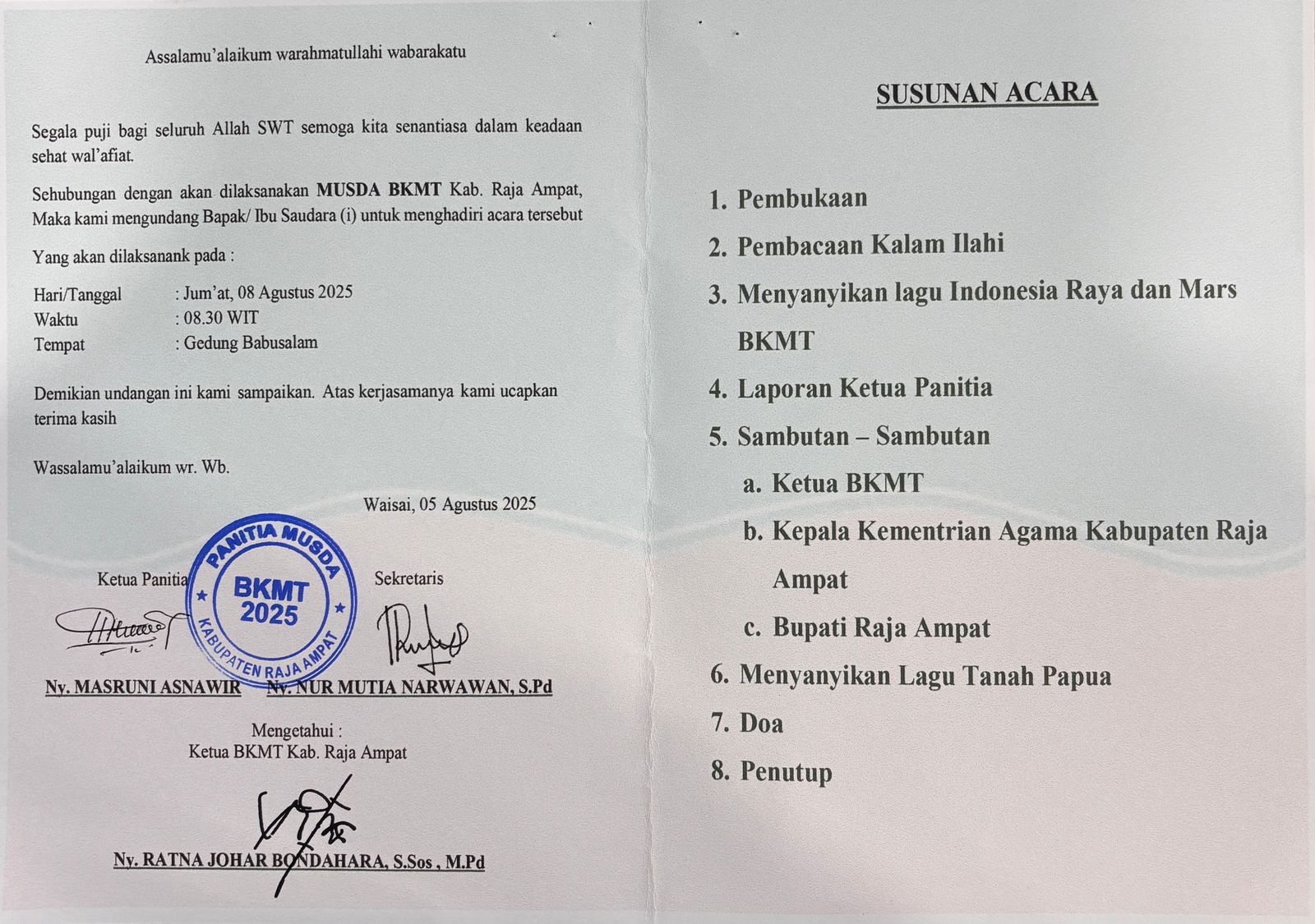 MUSDA Badan Kontak Majelis Taklim (BKMT) Raja Ampat |