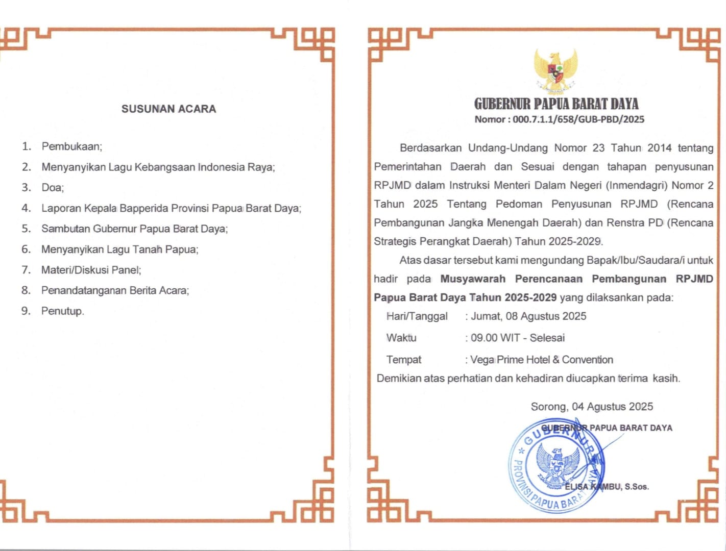Musyawarah Perencanaan Pembangunan RPJMD Papua Barat Daya Tahun 2025-2029 |